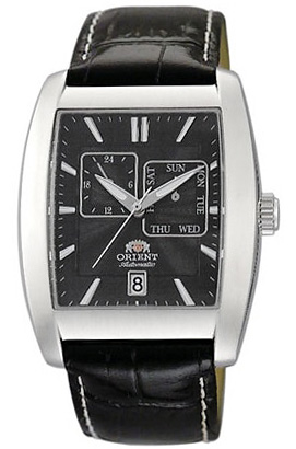 Мужские механические наручные часы с автоподзаводом Orient ETAB004B коллекции Multi Function. Калибр механизма — ET(46B). Запас хода более 40-ка часов. Количество камней - 21. На данной модели отображается дата, день недели и время суток (24-х часовая шкала). Стрелки и метки покрыты люминесцентным напылением (светятся в темноте).
