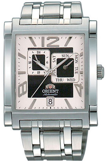 Мужские механические наручные часы с автоподзаводом Orient ETAC003W (FETAC003W0) коллекции Multi Function. Калибр механизма — ET(46B). Запас хода более 40-ка часов. Количество камней - 21. На данной модели отображается дата, день недели и время суток (24-х часовая шкала). Стрелки и метки покрыты люминесцентным напылением (светятся в темноте). Водонепроницаемость WR50 (5 атм).
