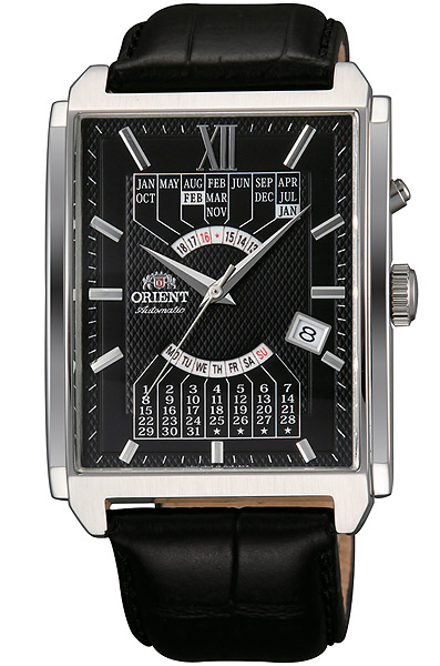 Мужские механические наручные часы с автоподзаводом Orient EUAG003B коллекции Multi-Year Calendar. Калибр механизма — EU(46D). Запас хода более 40-ка часов. Количество камней - 21. В данной модели присутствует функция вечного календаря, с помощью нее, синхронизируя текущий год с текущем месяцем, на циферблате отображается календарь целого месяца.