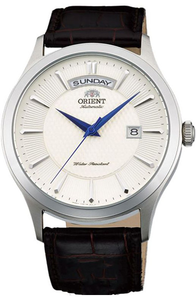 Мужские механические наручные часы с автоподзаводом Orient EV0V004S (FEV0V004SH) коллекции Wide Calendar. Калибр механизма — EV(46E). Запас хода более 40-ка часов. Количество камней - 21. На данной модели день недели отображается в полноформатном исполнении, а так же отображается дата. Завинчивающаяся задняя крышка часов. Водонепроницаемость WR50 (5 атм).