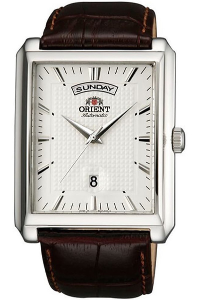 Мужские механические наручные часы с автоподзаводом Orient EVAF005W коллекции Wide Calendar. Калибр механизма — EV(46E). Запас хода более 40-ка часов. Количество камней - 21. На данной модели день недели отображается в полноформатном исполнении, а дата отображается через увеличительное стекло. Стрелки и метки покрыты люминесцентным напылением (светятся в темноте).