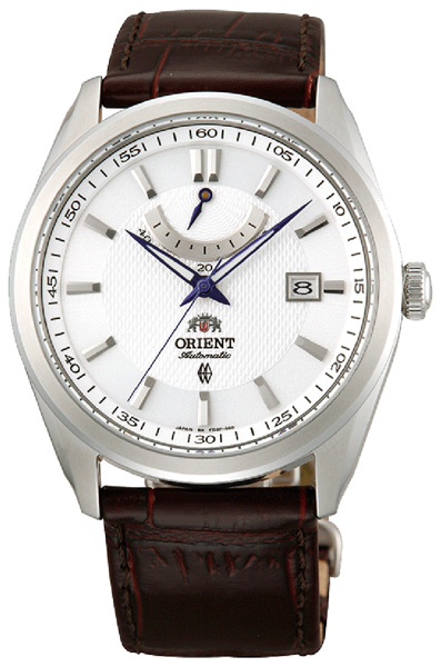 Мужские механические наручные часы с автоподзаводом Orient FD0F003W коллекции Power Reserve. Калибр механизма — FD(46N). Запас хода более 40-ка часов. Количество камней - 21. На циферблате отображается дата, а так же установлен ретроградный индикатор запаса хода. Стрелки покрыты люминесцентным напылением (светятся в темноте). Сапфировое стекло. Завинчивающаяся прозрачная задняя крышка.