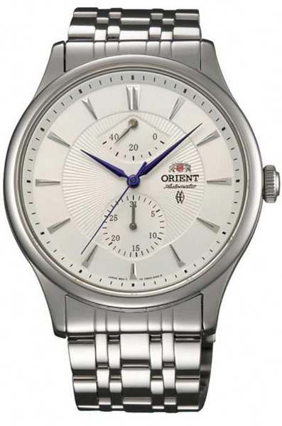 Мужские механические наручные часы с автоподзаводом Orient FM02002W (SFM02002W0) коллекции Power Reserve. Калибр механизма — FM(46U). Запас хода более 40-ка часов. Количество камней - 21. На циферблате отображается дата, а так же установлен ретроградный индикатор запаса хода. Завинчивающаяся прозрачная задняя крышка. Японская сборка (Made In Japan). Водонепроницаемость WR50 (5 атм).