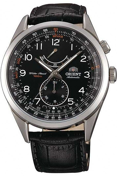 Мужские механические наручные часы с автоподзаводом Orient FM03004B (FFM03004B0) коллекции Power Reserve. Калибр механизма — FM(46U). Запас хода более 40-ка часов. Количество камней - 21. На циферблате отображается дата, а так же установлен ретроградный индикатор запаса хода. Внутренний вращающийся безель с логарифмической линейкой. Стрелки и метки покрыты люминесцентным напылением (светятся в темноте). Завинчивающаяся прозрачная задняя крышка. Водонепроницаемость WR100 (10 атм).