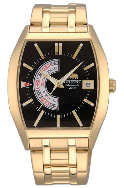 Мужские механические наручные часы с автоподзаводом Orient FNAA001B коллекции Automatic. Калибр механизма — FN(46V). Запас хода более 40-ка часов. Количество камней - 21. На данной модели отображается дата и день недели, а так же время до полудня и после полудня (AM и PM). Корпус и браслет данной модели полностью покрыты PVD покрытием желтого цвета. Стрелки и метки покрыты люминесцентным напылением (светятся в темноте).
