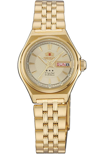 Женские механические наручные часы с автоподзаводом и возможностью ручного завода Orient NQ1S001C (FNQ1S001C9). Калибр механизма — NQ(559). Запас хода более 40-ка часов. Количество камней - 21. На данной модели отображается дата и день недели. На корпус и браслет нанесено PVD покрытие желтого цвета. Стрелки и метки покрыты люминесцентным напылением (светятся в темноте). Завинчивающаяся задняя крышка.