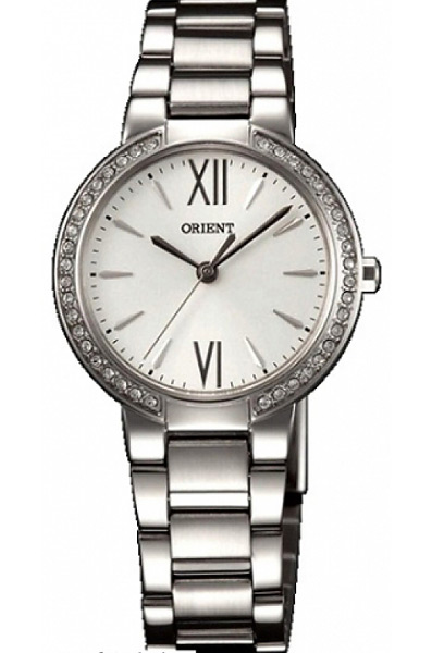 Женские кварцевые наручные часы Orient QC0M004W (FQC0M004W0). Калибр механизма — QС(RH5). Корпус часов украшен камнями из циркона. Водонепроницаемость WR50 (5 атм).