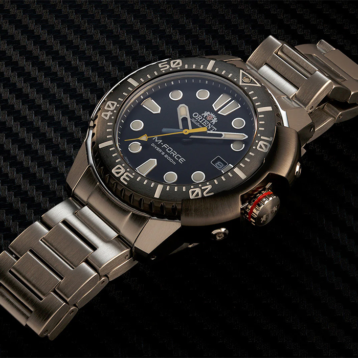 Мужские механические наручные часы с автоподзаводом и возможностью ручного завода Orient RA-AC0L07L коллекции M-Force. Линейка прочных функциональных часов M-FORCE является флагманской моделью спортивной коллекции с момента выпуска первой серии 25 лет назад. Буква “М” имеет три значения: механические, массивные, нестандартные. Калибр механизма F6727, специально разработанный для M-FORCE. Запас хода не менее 40-ка часов. Количество камней - 22. Функция стоп-секунда (остановка секундной стрелки для установки точного времени). На циферблате отображается текущая дата. Стрелки и метки покрыты люминесцентным напылением (светятся в темноте). Сапфировое стекло с антибликовым покрытием. Завинчивающаяся заводная головка и задняя крышка для более уверенной водонепроницаемости часов. Заводная головка с защитой. Однонаправленно вращающийся безель. Стальной браслет. На корпус частично нанесено стойкое PVD покрытие. Данная модель обладает высокой степенью водонепроницаемости WR200 (20 атм), подходит для глубокого погружения под воду и соответствует стандарту дайверских часов ISO 6425.