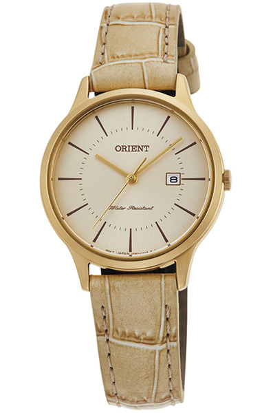 Женские кварцевые наручные часы Orient RF-QA0003G (RF-QA0003G10B). Калибр механизма — VT821. На данной модели отображается текущая дата. Корпус данной модели полностью покрыт PVD покрытием. Ремешок — телячья кожа.