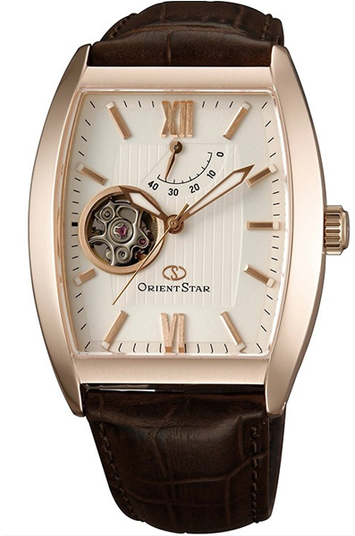 Мужские механические наручные часы с автоподзаводом и возможностью ручного завода Orient DAAA001W (SDAAA001W0) коллекции Orient Star. Калибр механизма — DA(40R). Запас хода более 40-ка часов. Количество камней - 22. На циферблате установлен ретроградный индикатор запаса хода, а так же на циферблате расположено прозрачное окошко, через него частично видно работу механизма. Стрелки и метки покрыты люминесцентным напылением (светятся в темноте). Прозрачная задняя крышка. Сапфировое стекло. Японская сборка (Made In Japan). На корпус нанесено стойкое PVD покрытие. Водонепроницаемость WR50 (5 атм).