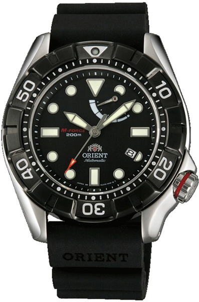 Мужские механические наручные часы с автоподзаводом и возможностью ручного завода Orient EL03004B (SEL03004B0) коллекции M-Force. Калибр механизма — EL(40N). В данной модели используются ударостойкие подшипники для защиты балансира от ударов. Запас хода более 40-ка часов. Количество камней - 22. Данная модель обладает высокой степенью водонепроницаемости WR200 (20 атм) и подходит для глубокого погружения под воду. На циферблате отображается дата, а так же установлен ретроградный индикатор запаса хода. Функция стоп-секунда (остановка секундной стрелки для установки точного времени). Стрелки и цифры покрыты люминесцентным напылением (светятся в темноте). Завинчивающаяся заводная головка и задняя крышка для более уверенной водонепроницаемости часов. На корпус частично нанесено PVD покрытие черного цвета. Вращающийся безель. Японская сборка (Made In Japan).