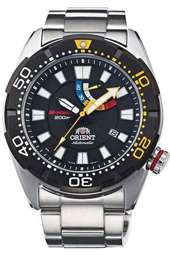 Мужские механические наручные часы с автоподзаводом и возможностью ручного завода Orient EL0A001B (SEL0A001B0) коллекции M-Force. Калибр механизма — EL(40N). В данной модели используются ударостойкие подшипники для защиты балансира от ударов. Запас хода более 40-ка часов. Количество камней - 22. Данная модель обладает высокой степенью водонепроницаемости WR200 (20 атм) и подходит для глубокого погружения под воду. На циферблате отображается дата, а так же установлен ретроградный индикатор запаса хода. Функция стоп-секунда (остановка секундной стрелки для установки точного времени). Стрелки и цифры покрыты люминесцентным напылением (светятся в темноте). Завинчивающаяся заводная головка и задняя крышка для более уверенной водонепроницаемости часов. На корпус частично нанесено PVD покрытие черного цвета. Вращающийся безель. Японская сборка (Made In Japan).