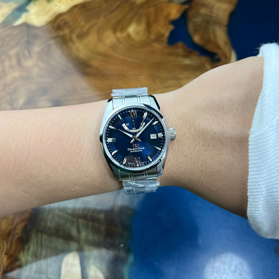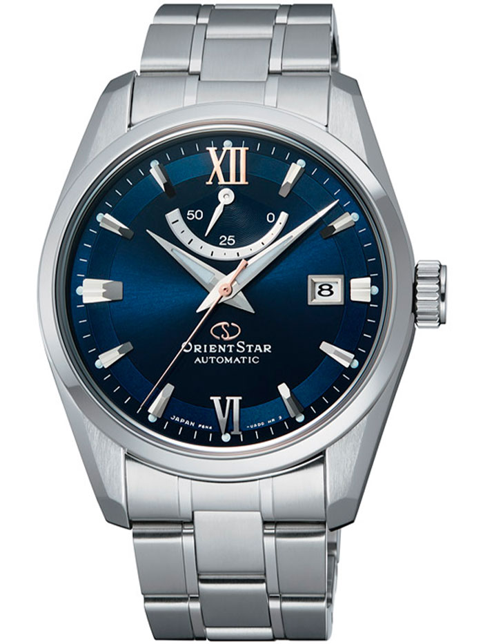 Мужские механические наручные часы с автоподзаводом и возможностью ручного завода Orient Star RK-AU0005L коллекции Contemporary. Калибр механизма — F6N43. Запас хода до 50-ти часов. 21 600 полуколебаний в час. Количество камней - 24. На циферблате установлен ретроградный индикатор запаса хода. Индикация текущей даты. Функция стоп-секунда (остановка секундной стрелки для установки точного времени). Установлено устойчивое к царапинам сапфировое стекло с антибликовым покрытием. Стрелки и метки покрыты люминесцентным напылением (светятся в темноте). Прозрачная завинчивающаяся задняя крышка. Японская сборка (Made In Japan). Водонепроницаемость WR100 (10 атм).