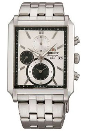 Мужские кварцевые наручные часы с хронографом (секундомером) Orient TTAE001W (STTAE001W0). Калибр механизма — TT(KFB). Секундомер может отсчитывать до 12 часов с шагом 1/20 секунды. На данной модели отображается дата. Стрелки и метки покрыты люминесцентным напылением (светятся в темноте). Японская сборка. Водонепроницаемость WR50 (5 атм).