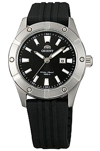 Женские водонепроницаемые наручные часы Orient SZ3X005B (FSZ3X005B0). Калибр механизма — SZ(HE7). Данная модель обладает высокой степенью водонепроницаемости WR200 (20 атм) и подходит для глубокого погружения под воду. На циферблате отображается дата. Стрелки и цифры покрыты люминесцентным напылением (светятся в темноте). Завинчивающаяся заводная головка и задняя крышка для более уверенной водонепроницаемости часов. Вращающийся безель.