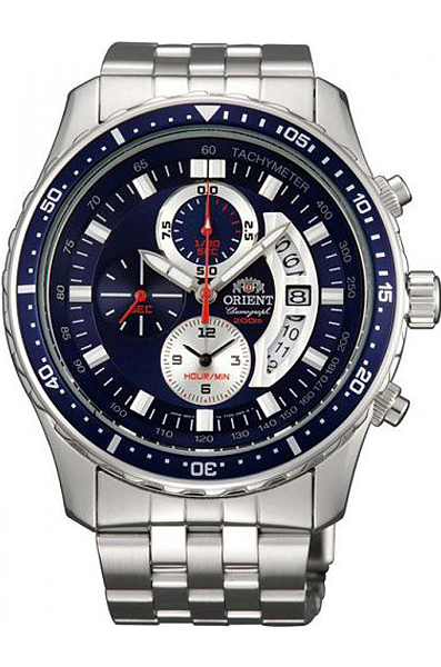 Мужские кварцевые наручные часы с хронографом (секундомером) Orient TT0Q002D (FTT0Q002D0). Калибр механизма — TT(KFB). Секундомер может отсчитывать до 12 часов с шагом 1/20 секунды, так же на циферблате часов присутствует шкала тахиметра для измерения средней скорости движения. На данной модели отображается дата. Стрелки и метки покрыты люминесцентным напылением (светятся в темноте). На корпус данной модели частично нанесено PVD покрытие черного цвета. Завинчивающаяся заводная головка и задняя крышка для более уверенной водонепроницаемости часов. Вращающийся безель.