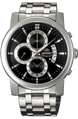 Мужские кварцевые наручные часы с хронографом (секундомером) Orient TT0R001B. Калибр механизма — TT(KFB). Секундомер может отсчитывать до 12 часов с шагом 1/20 секунды. На данной модели отображается дата. Стрелки и метки покрыты люминесцентным напылением (светятся в темноте).