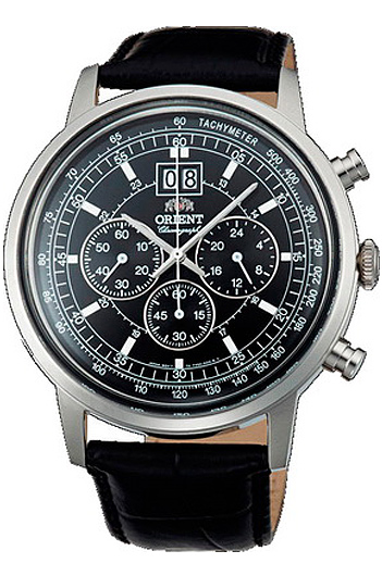 Мужские кварцевые наручные часы с хронографом (секундомером) Orient TV02003B (FTV02003B0). Калибр механизма — TV(KFC). Секундомер может отсчитывать до 60-ти минут, так же на циферблате часов присутствует шкала тахиметра для измерения средней скорости движения. На данной модели отображается дата и индикация времени суток (24-х часовая шкала). Стрелки и метки покрыты люминесцентным напылением (светятся в темноте). Завинчивающаяся задняя крышка для более уверенной водонепроницаемости часов. Водонепроницаемость WR50 (5 атм).
