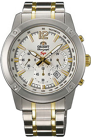 Мужские кварцевые наручные часы с хронографом (секундомером) Orient TW01003W. Калибр механизма — TW(KFD). Секундомер может отсчитывать до 60 минут с шагом 1/5 секунды, так же на циферблате часов присутствует шкала тахиметра для измерения средней скорости движения. На данной модели отображается дата и время суток (24-х часовая шкала). Стрелки и метки покрыты люминесцентным напылением (светятся в темноте). Завинчивающаяся задняя крышка.