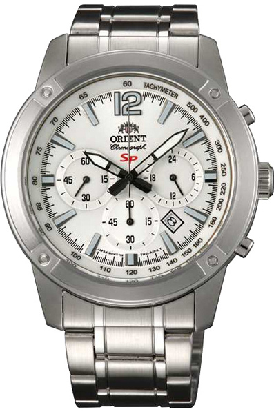 Мужские кварцевые наручные часы с хронографом (секундомером) Orient TW01005W (FTW01005W0). Калибр механизма — TW(KFD). Секундомер может отсчитывать до 60 минут с шагом 1/5 секунды, так же на циферблате часов присутствует шкала тахиметра для измерения средней скорости движения. На данной модели отображается дата и время суток (24-х часовая шкала). Стрелки и метки покрыты люминесцентным напылением (светятся в темноте). Завинчивающаяся задняя крышка. Водонепроницаемость WR50 (5 атм).