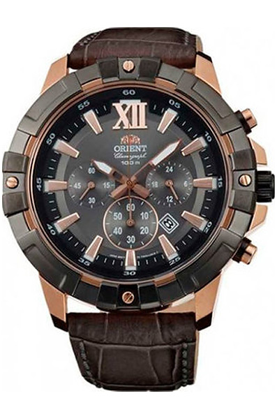Мужские кварцевые наручные часы с хронографом (секундомером) Orient TW03005A (FTW03005A0). Калибр механизма — TW(KFD). Секундомер может отсчитывать до 60-ти минут. На данной модели отображается дата и индикация времени суток (24-х часовая шкала). Стрелки и метки покрыты люминесцентным напылением (светятся в темноте). Завинчивающаяся заводная головка и задняя крышка для более уверенной водонепроницаемости часов. На корпус нанесено стойкое PVD покрытие. Водонепроницаемость WR100 (10 атм).