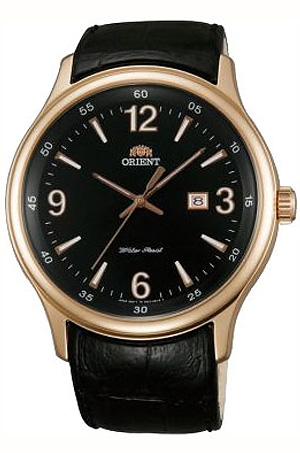 Мужские кварцевые наручные часы Orient UNC7006B коллекции Classic. Калибр механизма — UN(HT7). На данной модели отображается дата. Стрелки и метки покрыты люминесцентным напылением (светятся в темноте). Корпус полностью покрыт PVD покрытием розового цвета.