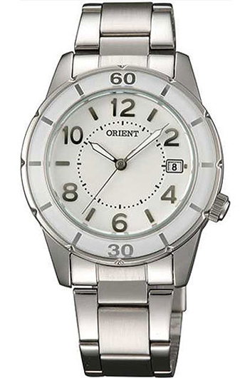 Женские кварцевые наручные часы Orient UNF0001W (FUNF0001W0). Калибр механизма — UN(HT7). На данной модели отображается дата. Водонепроницаемость WR50 (5 атм).