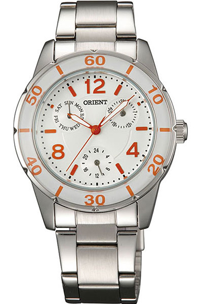 Женские кварцевые наручные часы Orient UT0J003W (FUT0J003W0). Калибр механизма — UT(H4A). На данной модели отображается дата, день недели и время суток. Водонепроницаемость WR50 (5 атм).