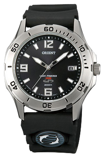 Мужские кварцевые наручные часы на солнечной батарее Orient WE00004B коллекции Light Powered 4000. Калибр механизма — WE(KL7). Данная модель не требует замены батареи. Время непрерывной работы от полностью заряженного состояния до полной остановки - около 10 месяцев. На данной модели отображается дата. Стрелки и метки покрыты люминесцентным напылением (светятся в темноте). Данная модель обладает высокой степенью водонепроницаемости WR200 (20 атм) и подходит для глубокого погружения под воду. Завинчивающаяся заводная головка и задняя крышка для более уверенной водонепроницаемости часов. Вращающийся безель.
