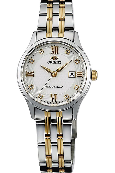 Женские кварцевые наручные часы Orient WV0121SZ. На циферблате отображается дата. Циферблат украшен камнями из циркона. На корпус и браслет частично нанесено стойкое PVD покрытие.