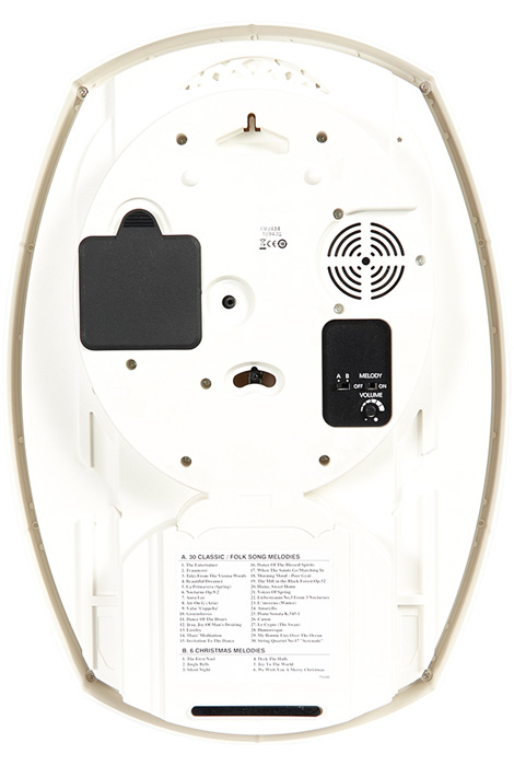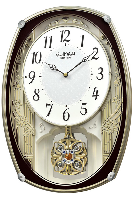 Кварцевые музыкальные настенные часы с маятником Rhythm 4MJ434WD06. Данная модель работает от батареек типа D x 2 шт. (входят в комплект). 12+12 классических, +6 рождественских мелодии (СTS). Маятник. Почасовая мелодия. Регулятор громкости. Режим демонстрации. Автоматический выключатель мелодии в темноте с сенсорным датчиком. Художественное оформление кристаллами Swarovski. Ход стрелки — плавный (бесшумный).
