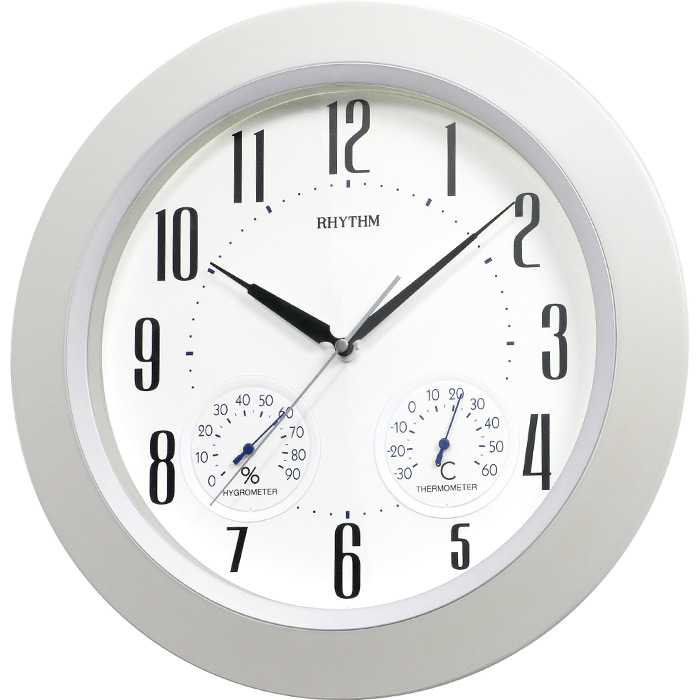 Кварцевые настенные часы Rhythm CFG712NR03 с возможностью измерения температуры и влажности внутри помещения. Данная модель работает от батарейки типа R6(AA) x 1 шт. (входит в комплект). Корпус выполнен из пластика. од секундной стрелки — плавный (бесшумный). Форма стекла — плоское.