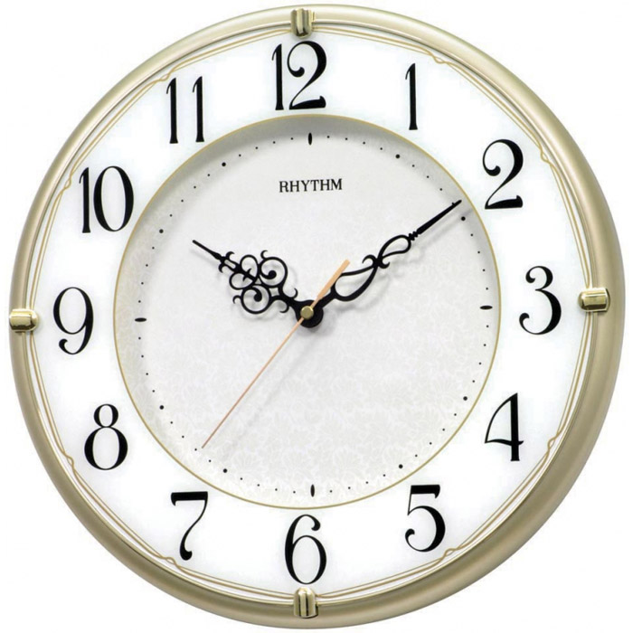 Кварцевые настенные часы Rhythm CMG448NR18. Данная модель работает от батарейки типа R6(AA) x 1 шт. (входит в комплект). Корпус выполнен из пластика. Ход секундной стрелки — плавный (бесшумный). Форма стекла — плоское.