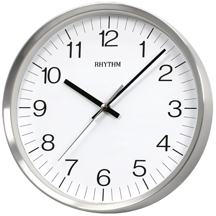 Кварцевые настенные часы Rhythm CMG482NR19. Данная модель работает от батарейки типа R6(AA) x 1 шт. (входит в комплект). Алюминиевая рамка. Ход секундной стрелки — плавный (бесшумный).