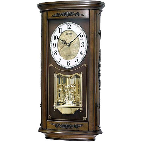 Кварцевые музыкальные настенные+настольные часы с боем Rhythm CMH737NR06. Данная модель работает от батареек типа R14(C) x 2 шт. (входят в комплект). Максимально приближенный к настоящему звук боя и мелодий — запатентованная разработка воспроизведения звука компании Rhythm «Sound In Place». Варианты звукового сопровождения: Ежечасная мелодия «Westminster» с боем; ежечасная мелодия «Westminster» с боем и проигрыванием части мелодии каждую четверть часа; 6 классических ежечасных мелодий; 3 Рождественские ежечасные мелодии. Автоматическое выключения звука с 22:00 — 06:00. Возможность отключения звука и включения проигрывания звука 24 часа. Плавная регулировка громкости мелодий. Корпус выполнен из дерева. Ход стрелки — плавный (бесшумный). Маятник украшен камнями Swarovski, перламутровый циферблат. Форма стекла — выпуклое.