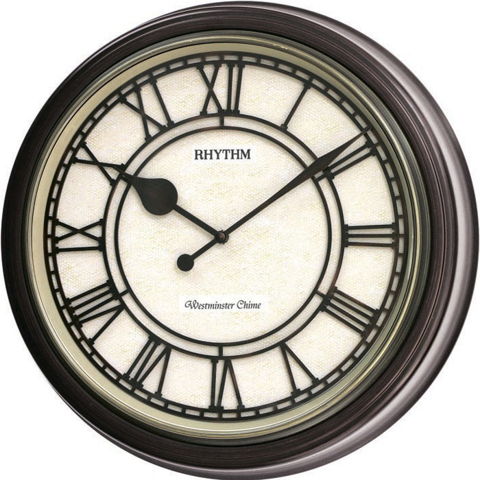 Кварцевые музыкальные настенные часы с боем Rhythm CMH740NR06. Данная модель работает от батареек типа R14(C) x 2 шт. (входят в комплект). Максимально приближенный к настоящему звук боя и мелодий — запатентованная разработка воспроизведения звука компании Rhythm «Sound In Place». Варианты звукового сопровождения: Ежечасная мелодия «Westminster» с боем; ежечасная мелодия «Westminster» с боем и проигрыванием части мелодии каждую четверть часа; 6 классических ежечасных мелодий; 3 Рождественские ежечасные мелодии. Автоматическое выключения звука с 22:00 — 06:00. Возможность отключения звука и включения проигрывания звука 24 часа. Плавная регулировка громкости мелодий. Корпус выполнен из пластика. Объемные цифры. Ход стрелки — плавный (бесшумный).