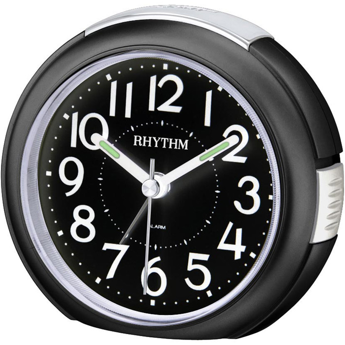 Кварцевый будильник Rhythm CRE858NR02. Данная модель работает от батарейки типа R6(AA) x 1 шт. (входит в комплект). Корпус выполнен из пластика. Принудительная подсветка. Функция повтора срабатывания будильника (Snooze) — интервал 5 минут. Стрелки покрыты люминесцентным напылением (светятся в темноте). Ход секундной стрелки — плавный (бесшумный).