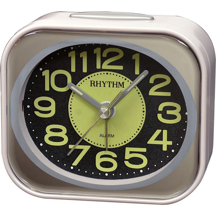 Кварцевый будильник Rhythm CRE876NR03. Данная модель работает от батарейки типа R6(AA) x 1 шт. (входит в комплект). Корпус выполнен из пластика. Принудительная подсветка. Функция повтора срабатывания будильника (Snooze) — интервал 5 минут. Стрелки и цифры покрыты люминесцентным напылением (светятся в темноте). Ход секундной стрелки — плавный (бесшумный).