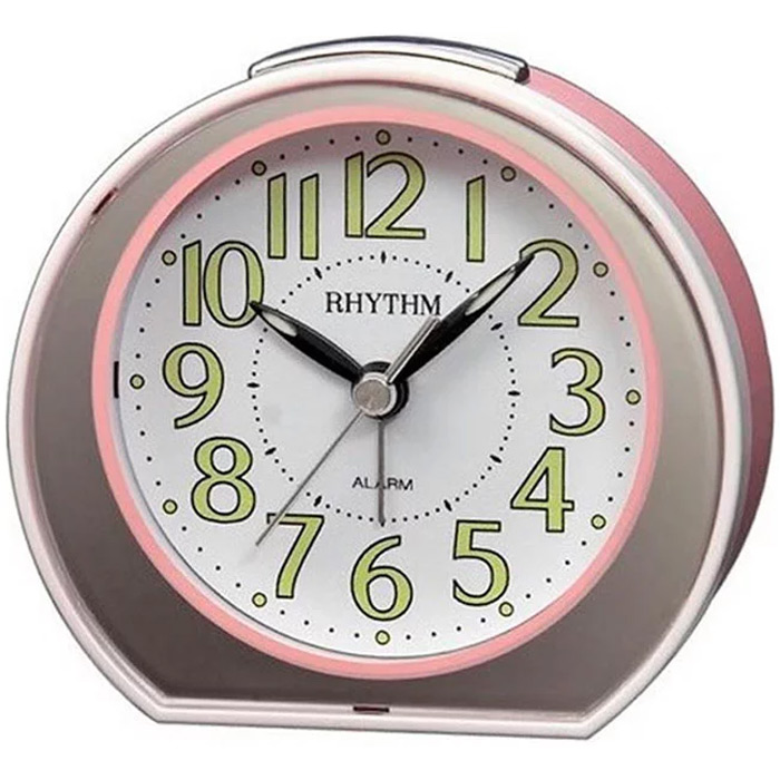Кварцевый будильник Rhythm CRE877NR13. Данная модель работает от батарейки типа R6(AA) x 1 шт. (входит в комплект). Корпус выполнен из пластика. Принудительная подсветка. Функция повтора срабатывания будильника (Snooze) — интервал 5 минут. Стрелки и цифры покрыты люминесцентным напылением (светятся в темноте). Ход секундной стрелки — плавный (бесшумный).