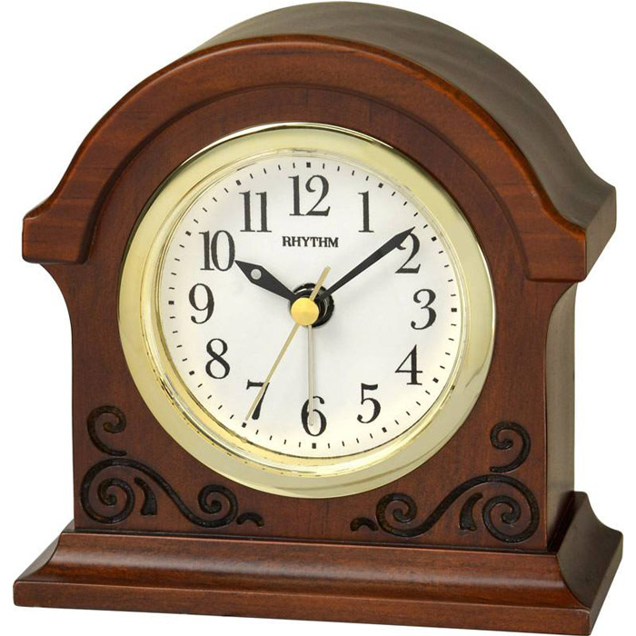 Кварцевый будильник Rhythm CRE956NR06. Корпус изготовлен из дерева. Данная модель работает от батарейки типа R6(AA) x 1 шт. (входит в комплект). Ход секундной стрелки — дискретный (тикают).