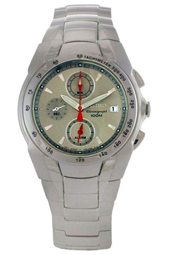 Мужские кварцевые наручные часы с хронографом (секундомером) и будильником Seiko SNA519P1. Калибр механизма — 7T62. Секундомер может отсчитывать до 60 минут с шагом 1/5 секунды, так же на циферблате часов присутствует шкала тахиметра для измерения средней скорости движения. Будильник может быть установлен в течение ближайших 12 часов. На данной модели отображается дата. Стрелки и метки покрыты люминесцентным напылением (светятся в темноте). Завинчивающаяся задняя крышка часов. Водонепроницаемость WR100 (10 атм).