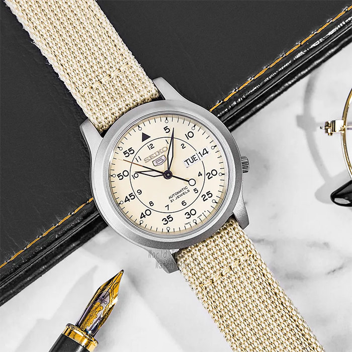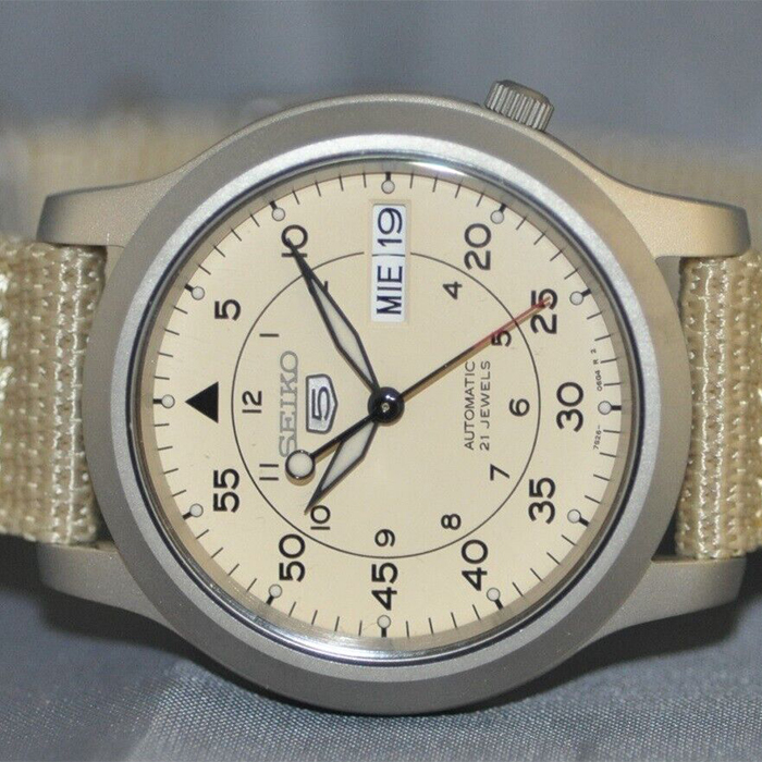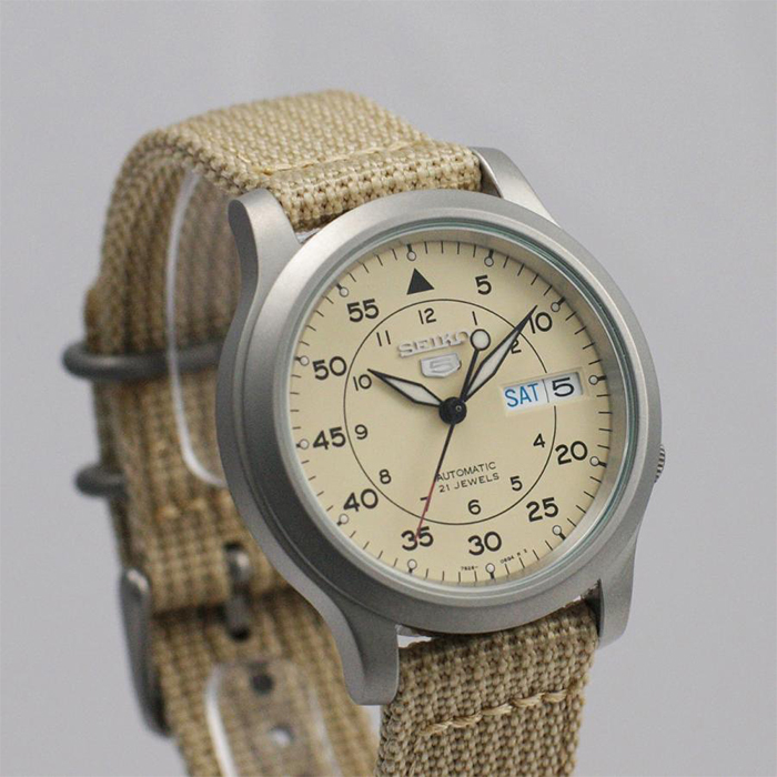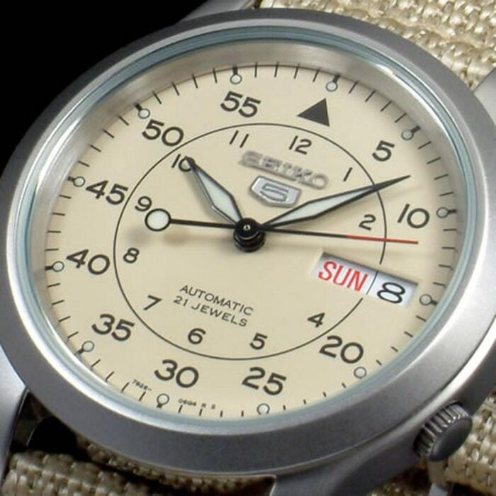 Мужские механические наручные часы с автоподзаводом Seiko SNK803K2 (SNK803K2S) коллекции Seiko 5. Калибр механизма — 7S26. Запас хода - не менее 40-ка часов. 21 600 полуколебаний в час. Количество камней - 21. На данной модели отображается дата и день недели. Стрелки и метки покрыты люминесцентным напылением LumiBright (светятся в темноте). Установлено минеральное стекло повышенной прочности Hardlex Crystal. Прозрачная завинчивающаяся задняя крышка часов. Текстильный ремешок. Водонепроницаемость WR (3 атм).