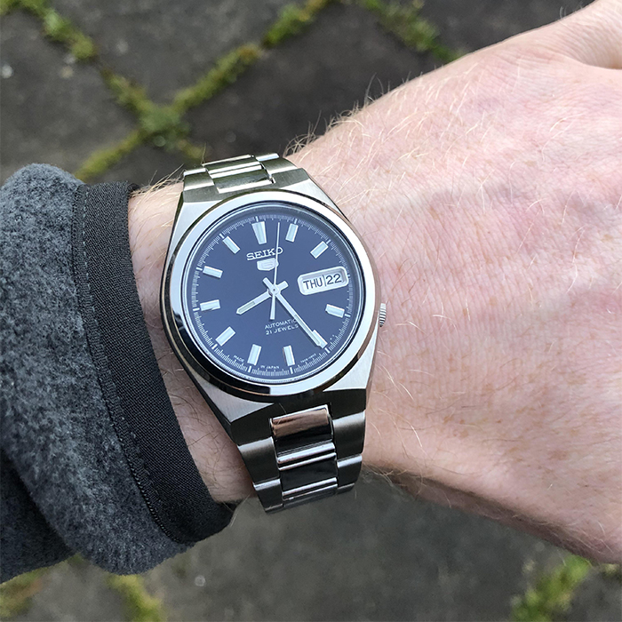 Мужские механические наручные часы японского производства с автоподзаводом Seiko SNKC51J1 коллекции Seiko 5. Калибр механизма — 7S26. Запас хода - не менее 40-ка часов. 21 600 полуколебаний в час. Количество камней - 21. На данной модели отображается дата и день недели. Стрелки и метки покрыты люминесцентным напылением LumiBright (светятся в темноте). Установлено минеральное стекло повышенной прочности Hardlex Crystal. Прозрачная завинчивающаяся задняя крышка часов. Стальной браслет. Водонепроницаемость WR (3 атм). Японская сборка (Made In Japan).