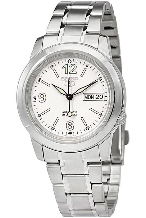 Мужские механические наручные часы с автоподзаводом Seiko SNKE57K1 (SNKE57K1S) коллекции Seiko 5. Калибр механизма — 7S26. Запас хода - не менее 40-ка часов. 21 600 полуколебаний в час. Количество камней - 21. На данной модели отображается дата и день недели. Стрелки и метки покрыты люминесцентным напылением LumiBright (светятся в темноте). Установлено минеральное стекло повышенной прочности Hardlex Crystal. Прозрачная завинчивающаяся задняя крышка часов. Стальной браслет. Водонепроницаемость WR (3 атм).