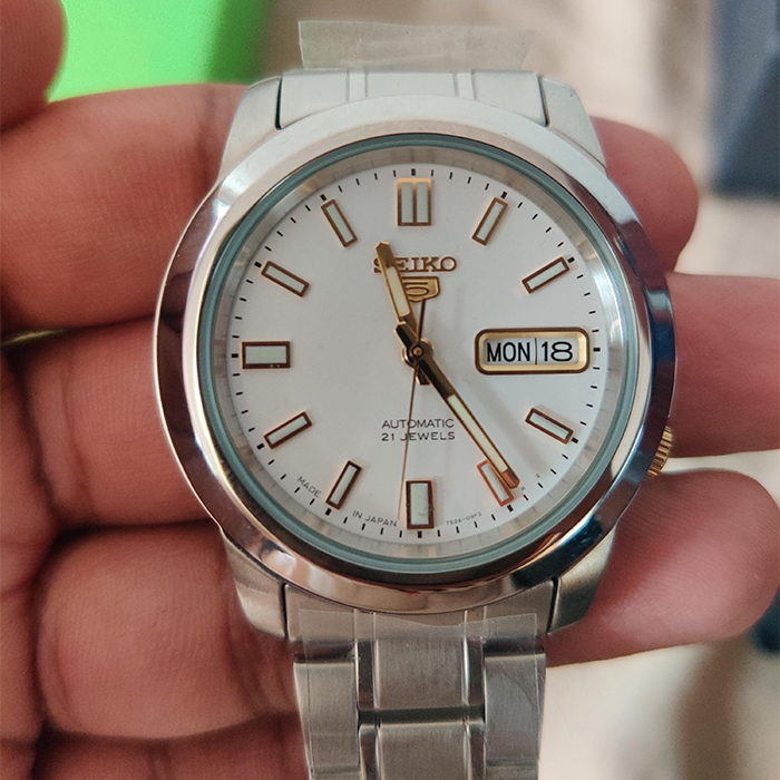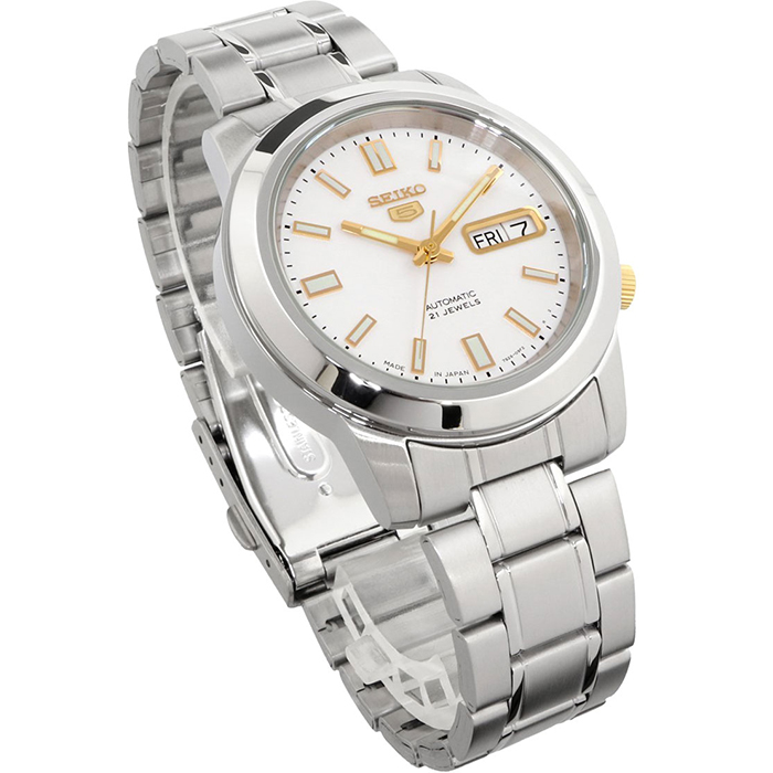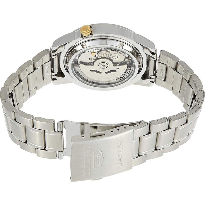 Мужские механические наручные часы японского производства с автоподзаводом Seiko SNKK07J1 коллекции Seiko 5. Калибр механизма — 7S26. Запас хода - не менее 40-ка часов. 21 600 полуколебаний в час. Количество камней - 21. На данной модели отображается дата и день недели. Стрелки и метки покрыты люминесцентным напылением LumiBright (светятся в темноте). Установлено минеральное стекло повышенной прочности Hardlex Crystal. Прозрачная завинчивающаяся задняя крышка часов. Стальной браслет. Водонепроницаемость WR (3 атм). Японская сборка (Made In Japan).