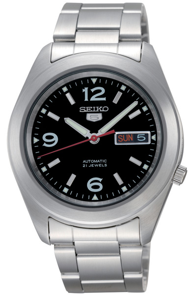 Мужские механические наручные часы с автоподзаводом Seiko SNKM77K1 коллекции Seiko 5. Калибр механизма — 7S26. Запас хода более 40-ка часов. Количество камней - 21. На данной модели отображается дата и день недели. Стрелки и метки покрыты люминесцентным напылением (светятся в темноте). Прозрачная завинчивающаяся задняя крышка часов.