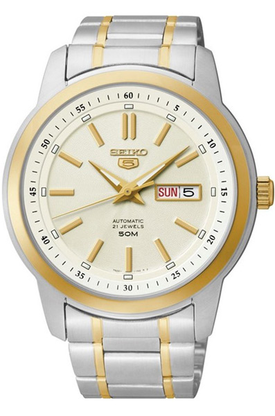 Мужские механические наручные часы с автоподзаводом Seiko SNKM92K1 (SNKM92K1S) коллекции Seiko 5. Калибр механизма — 7S26. Запас хода более 40-ка часов. 21 600 полуколебаний в час. Количество камней - 21. На данной модели отображается дата и день недели. Стрелки и метки покрыты люминесцентным напылением LumiBright (светятся в темноте). На корпус и браслет часов частично нанесено стойкое PVD покрытие. Прозрачная завинчивающаяся задняя крышка часов.