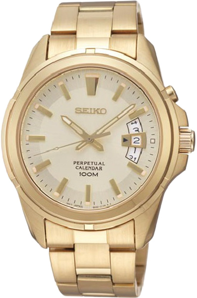 Мужские кварцевые наручные часы с вечным календарем Seiko SNQ134P1 коллекции CS Dress. Калибр механизма — 6A32. На данной модели отображается дата. Автоматический календарь до 28 февраля 2100 года. Стрелки и метки покрыты люминесцентным напылением LumiBright (светятся в темноте). Сапфировое стекло. На корпус и браслет данной модели нанесено стойкое PVD покрытие. Завинчивающаяся задняя крышка часов. Водонепроницаемость WR100 (10 атм).