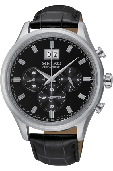 Мужские кварцевые наручные часы с хронографом (секундомером) Seiko SPC083P2 коллекции CS Dress. Калибр механизма — 7T04. Секундомер может отсчитывать до 60 минут с шагом 1/5 секунды. На данной модели отображается дата. Установлено минеральное стекло повышенной прочности Hardlex Crystal. Ремешок — телячья кожа. Завинчивающаяся задняя крышка часов. Водонепроницаемость WR100 (10 атм).