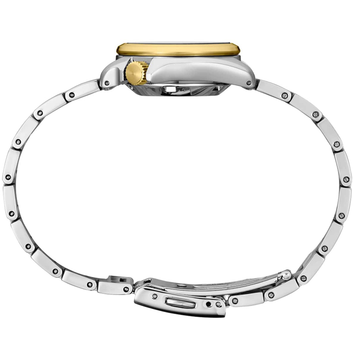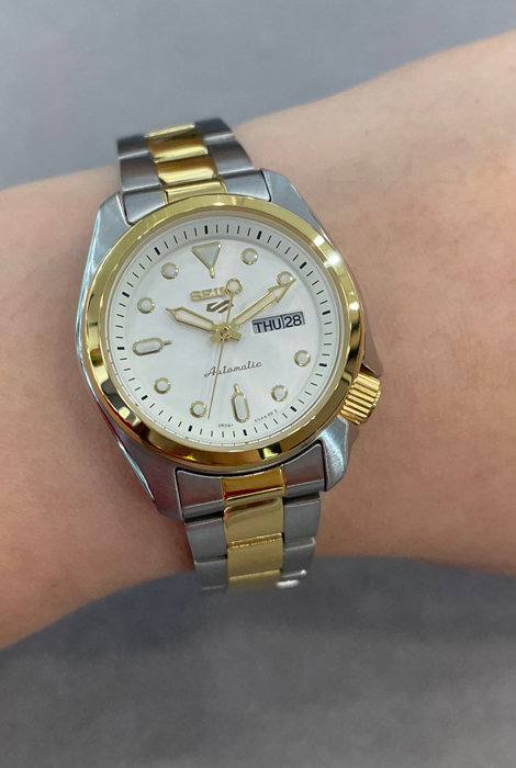 Женские наручные часы с автоподзаводом и возможностью ручного завода Seiko SRE004K1 (SRE004K1S) коллекции Seiko 5 Sports. Калибр механизма — 2R06. Запас хода более 40-ка часов. 21 600 полуколебаний в час. Количество камней - 21. На данной модели отображается текущая дата и день недели. Функция стоп-секунда (остановка секундной стрелки для установки точного времени). Стрелки и метки покрыты люминесцентным напылением LumiBright (светятся в темноте). На данную модель установлено минеральное стекло повышенной прочности Hardlex Crystal. Стальной браслет. Завинчивающаяся задняя крышка часов. На корпус и браслет частично нанесено стойкое PVD покрытие. Водонепроницаемость WR100 (10 атм).